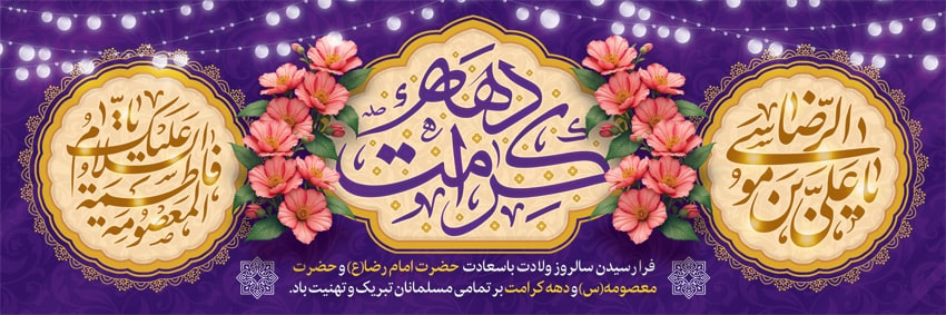 نمونه طرح لایه باز پلاکارد تبریک میلاد حضرت معصومه (س) و دهه کرامت