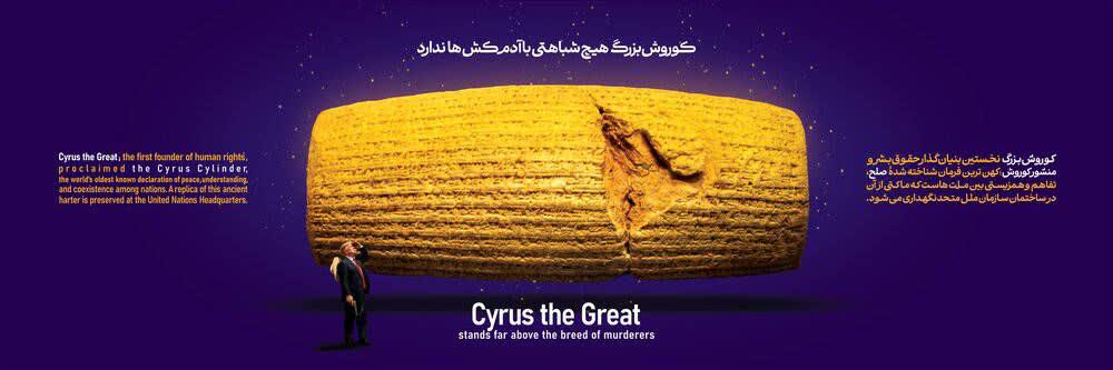 این دیوارنگاره پاسخی هنرمندانه و مفهومی به اظهارات عجیب رئیسجمهور ایالات متحده مبنی بر شباهت خود با کوروش کبیر است و به همین مناسبت در یکی از میادین اصلی شیراز نصب شد.